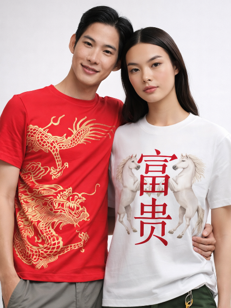 เสื้อยืดผู้ชาย แขนสั้น พิมพ์ลายกราฟิก Chinese New Year สีแดง ซื้อ 5 ชิ้น