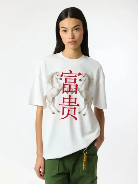 เสื้อยืดผู้หญิง รุ่น WHITE DOUBLE HORSE สีแดง ซื้อ 1 ชิ้น