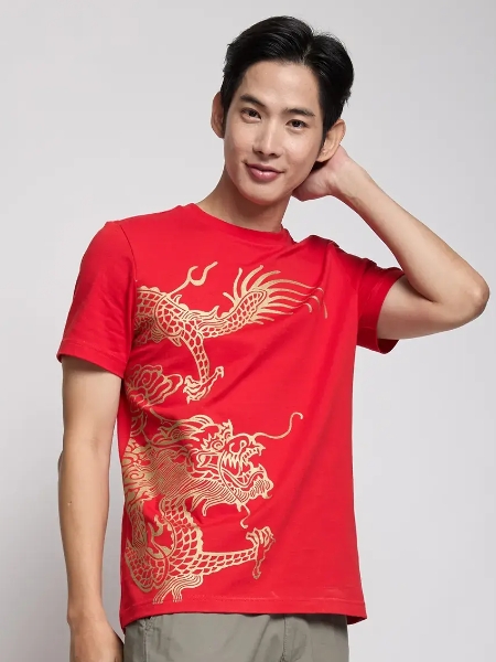 เสื้อยืดผู้ชาย แขนสั้น พิมพ์ลายกราฟิก Chinese New Year สีแดง ซื้อ 1 ชิ้น